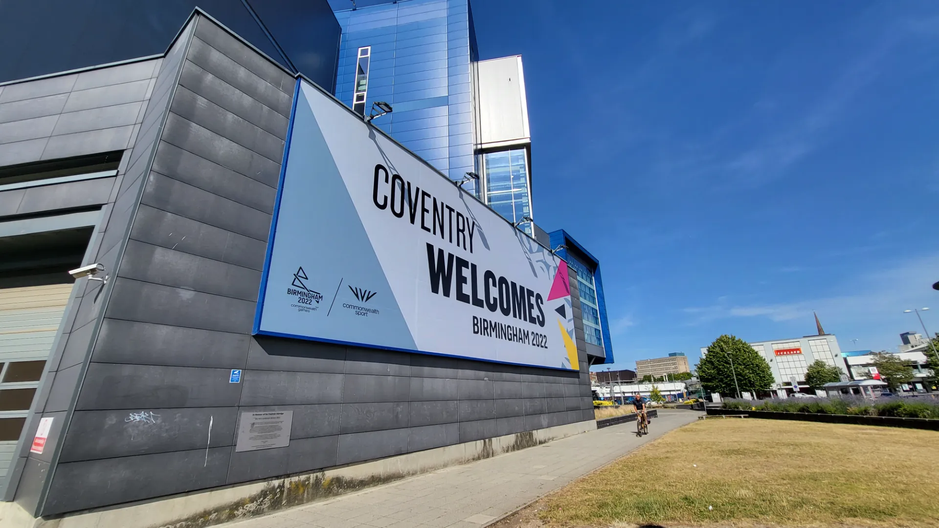 From 28 July to 8 August 2022, Coventry hosted Judo, Wrestling and Rugby Sevens events for the Commonwealth Games at Coventry Arena. To reinforce the city’s presence within the Games, the council commissioned a large-scale temporary building wrap and hoarding installation on the city’s former IKEA building, a highly prominent landmark located in the heart of Coventry.